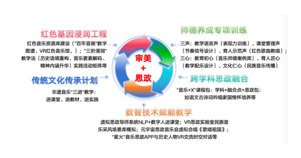 这让我反思自己的音乐教育类和师范技能类课程:是否也能打破艺术与科技、审美与逻辑的边界?是否能让师范生在“古诗美唱”中同时训练文学解读与AI配乐能力?是否能在“红色音乐VR工作坊”中融合历史认知、情感体验与技术实践?是否能借助数智化手段,在音乐素养培养中提升师范审美化教学技能,实现增效、提质、添彩?