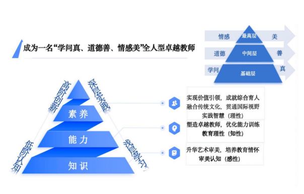 在不断的教学实践中,我凝练出四大培养理念:一是升华艺术审美,培养教育情怀;二是塑造卓越教师,优化能力训练;三是实现价值引领,成就综合育人;四是融合传统文化,贯通国际视野。