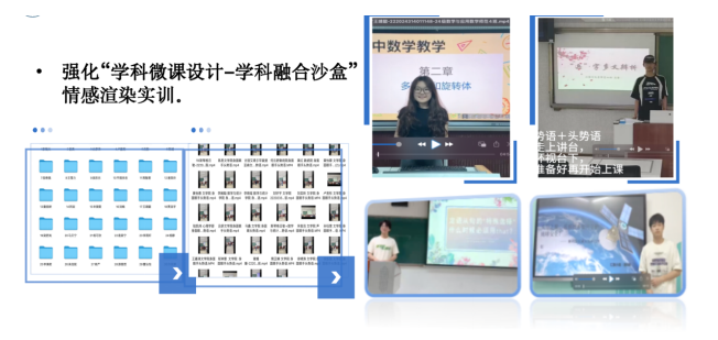 (2)塑“教师范”:利用VR美育课堂创设沉浸式鉴赏场景,通过MR混合现实平台开展“名师示范—模拟授课—AI评课”闭环师范生教姿、教态训练;结合眼动追踪技术,优化审美体验力的培养;