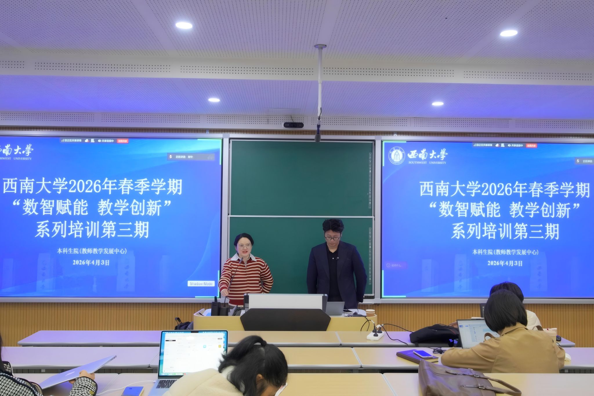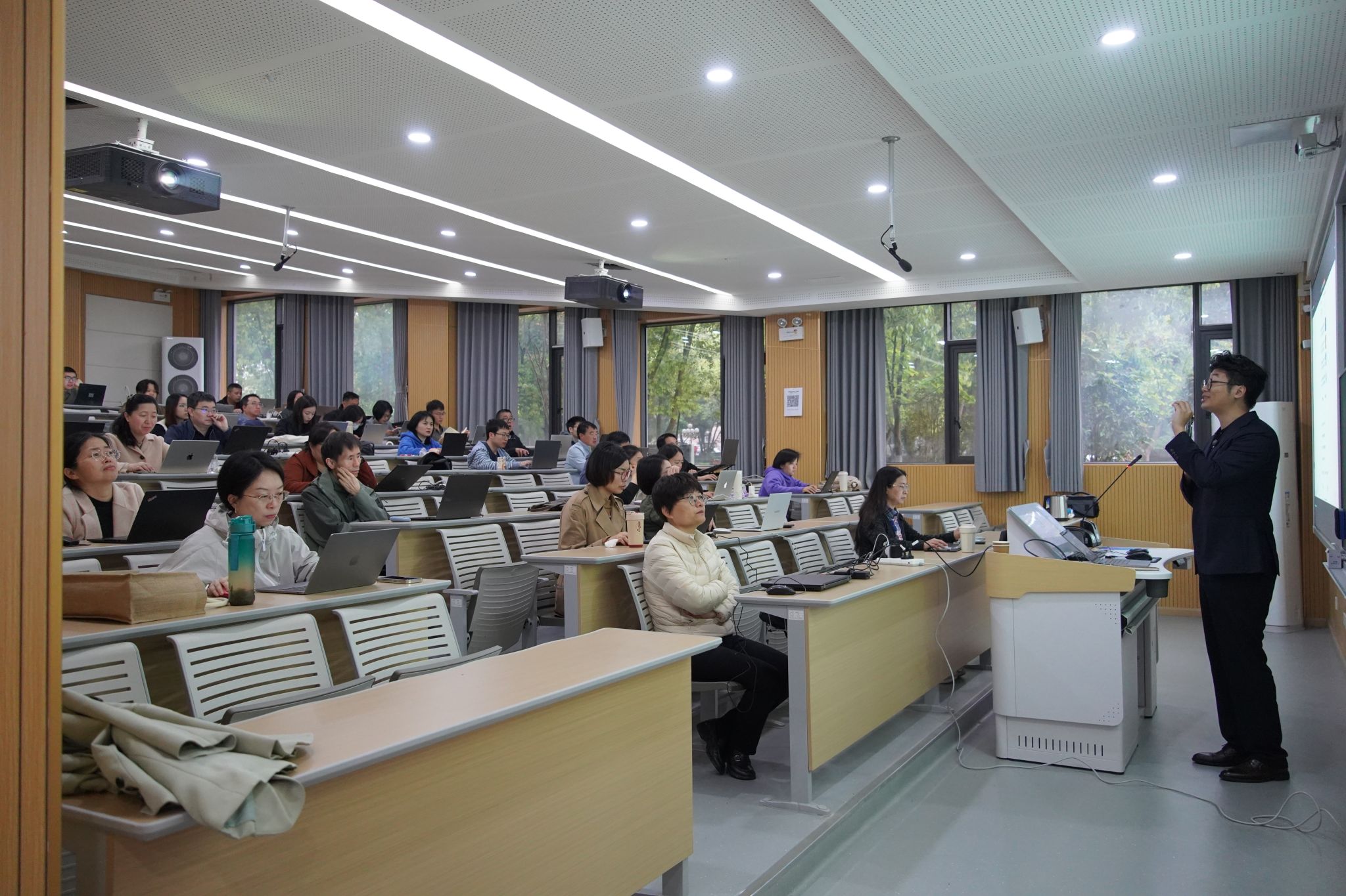 4月2日至3日,学校在31教智慧教学楼开展了“数智赋能教学创新”系列培训第三期。本次培训聚焦“AI编程赋能教学应用开发”,邀请秋叶集团高级AIGC培训师郑宇、孙傲担任主讲。共有150余名教师通过线上线下方式同步参与学习,共同探索教育数字化转型的实践路径。