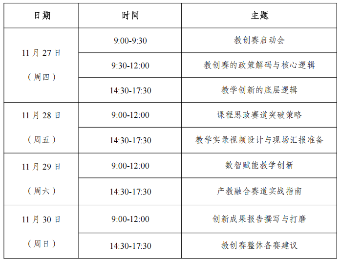 3.教创赛校级赛拟于12月举行,具体比赛时间、流程规则及相关要求另行通知,请参训教师提前做好备赛准备。
