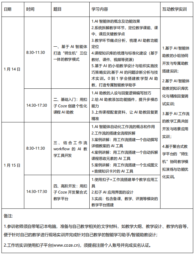 关于举办“数智赋能教学转型:AI智能体教学助教开发实训工作坊”的通知