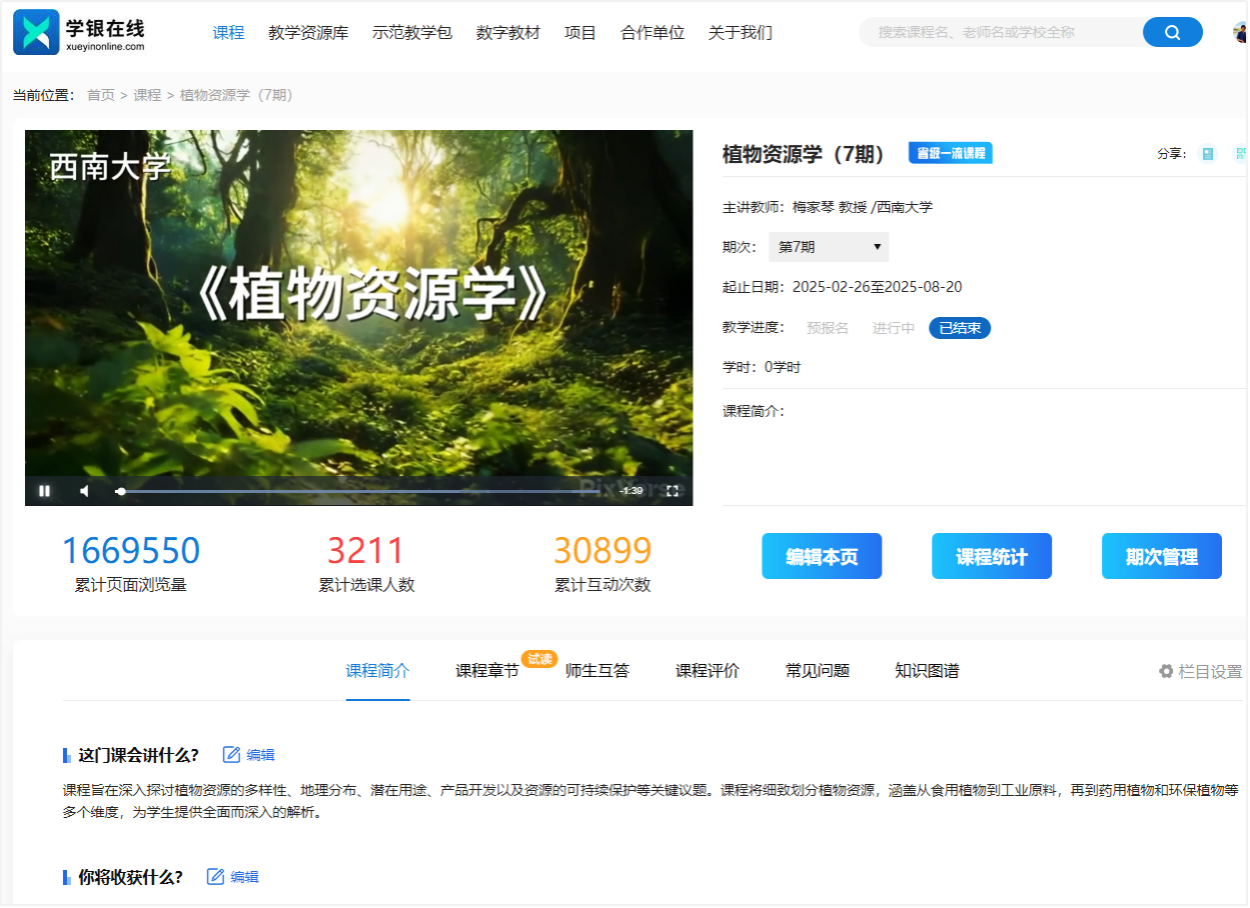 转机,竟源自一次不经意的“诉苦”。当我对同为教师的家人抱怨“下学期我又没课上”时,对方一句“搞个线上通选课呗,学生爱选,一劳永逸”瞬间点醒了我。2021年暑假,我毅然暂停科研,全身心投入课程建设。从脚本撰写到视频录制,我硬是将植物资源学的线上课程门户搭建了起来,把自己从一无所知的小白逼成了能讲、会录、会剪、还会建课的“多面手”。