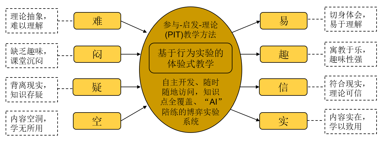 我从2005年硕士毕业加入西南大学(原西南师范大学)以来,先后在计算机与信息科学学院和经济管理学院任教,讲授过经济学、管理经济学、博弈论、博弈论与机制设计、Python程序设计、Python数据分析与可视化、算法分析与设计、机器学习等课程。教学过程中,我深切感受到经济学理论教学的一大核心困境:它无法像自然科学那样,通过实验直观验证理论结果。依托计算机与经济学交叉学科的知识背景,我尝试以数字化、智能化手段为突破,探索课堂行为实验赋能经管类课程的体验式教学路径。