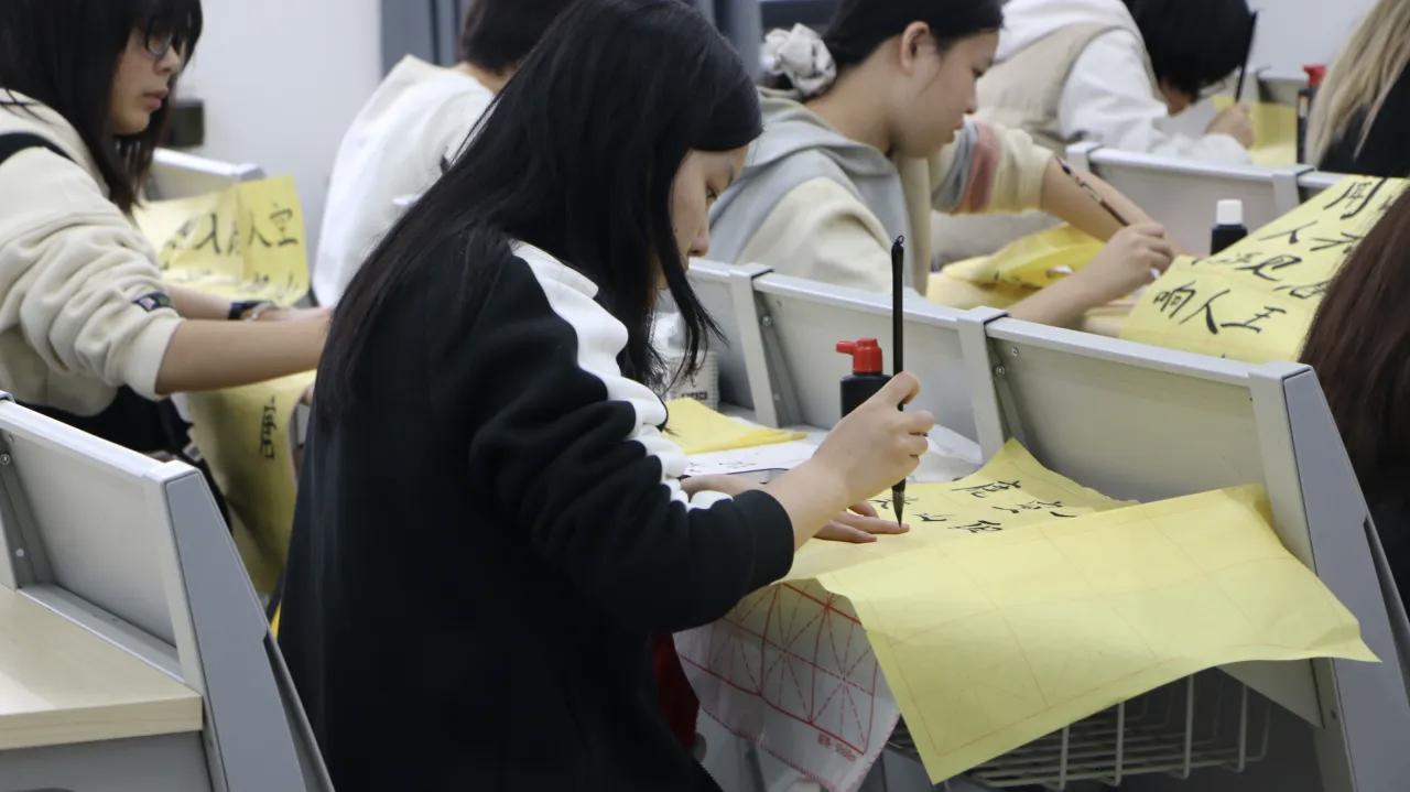 11月22日下午,“三笔字”考核在第九教学楼有序进行。全体同学先进行十分钟钢笔字书写,再依次上台进行粉笔字书写,台下同学则进行毛笔字书写。