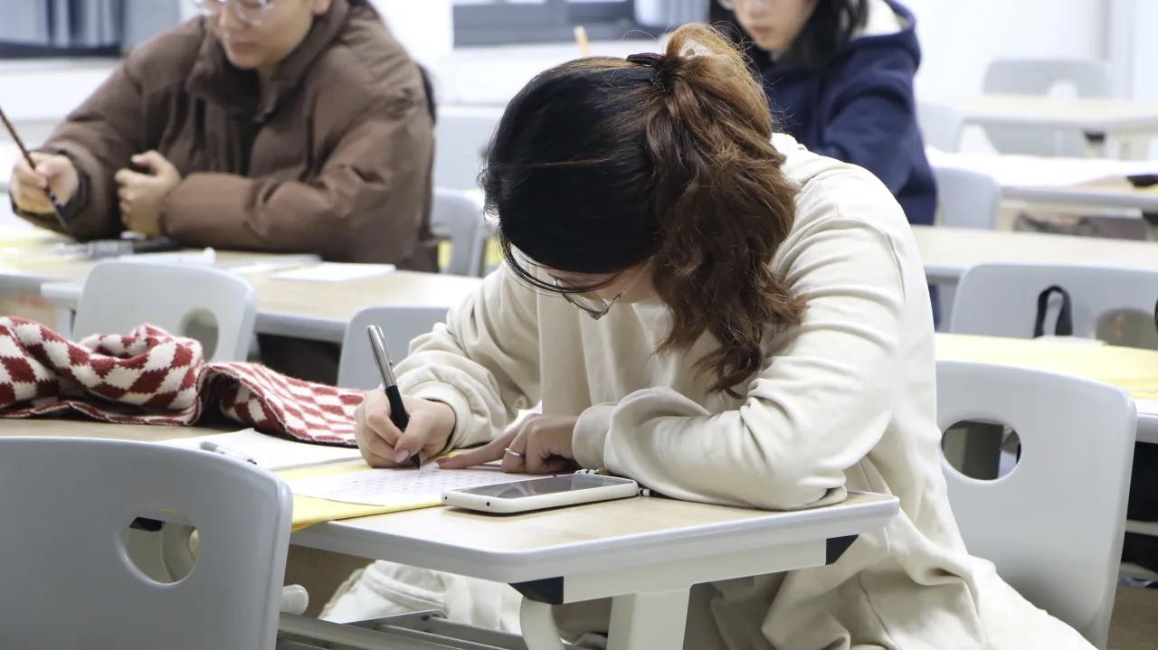 11月22日晚上,“高考真题”考核在第十教学楼进行。测试选用近年来各省历史高考真题,模拟真实考试环境。考场内,同学们认真审题,细致作答,在实战中检验自身对历史学科核心知识的掌握程度。