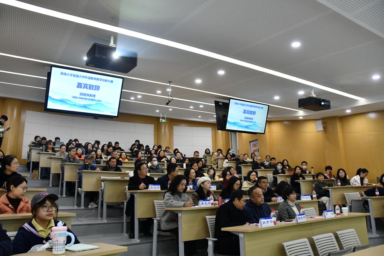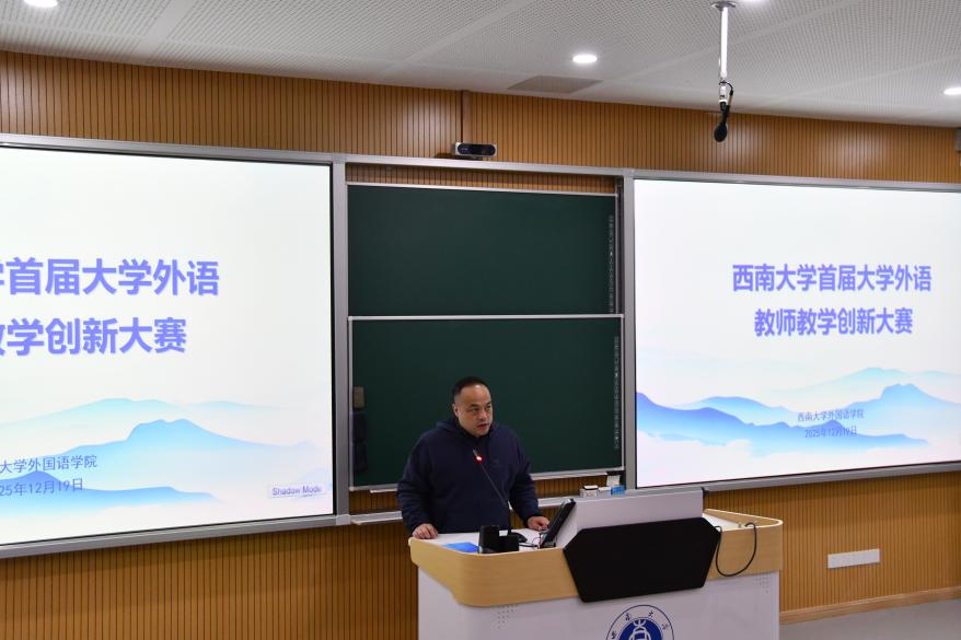 赛前,西南大学教师教学发展中心主任田晓伟为大赛致辞。他表示,该赛事不仅是推动外语教学改革、提升教师教学能力的“关键抓手”,也是选拔优秀教师冲击市级、国家级教学赛事的 “重要通道”;同时强调 “备赛过程本身就是教师重构教学理念、优化教学方法的成长之旅”,并介绍学校已整合青教赛、微课比赛等资源,从培训指导、资源供给等维度为教师发展赋能,让在场教师感受到学校对教学创新的重视与支持。