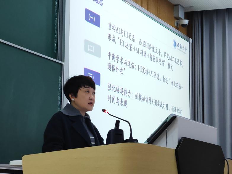 赛后,西南大学教师教学发展中心石定芳副主任进行点评。她指出,本次大赛体现了教师从“技术应用”到“教学重构”的跨越,展现出系统性创新思维,并鼓励教师将优秀案例转化为可推广的教学成果,通过多种形式进行传播与沉淀。